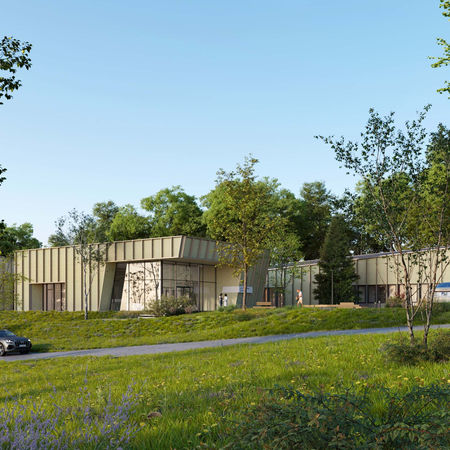 Медичний центр має чітке функціональне зонування за відділеннями, організованими навколо внутрішнього двору. Проєктом передбачено замкнену транзитну систему, із зручним доступом до всіх функціональних зон. Входи до окремих відділень частково розділені, щоб уникнути перетину пацієнтів, які звертаються за плановою та екстреною допомогою. Частина будівлі інтегрована в рельєф: підземний рівень з одного боку прихований, а з іншого має прямий вихід на вулиц ю. Щоб гармонійно вписати об’єкт у міську забудову з двосхилими дахами, використано подібне рішення з але з діагональним ухилом.