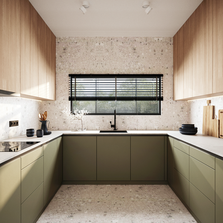 NadObriem — двоповерховий будинок у стилі барнхауз, інтегрований у складний природний рельєф без втрат для ландшафту. Ми зберегли все важливе: простір, екологічний контекст, родинну спадкоємність. Серцем будинку став двосвітний простір із панорамним склінням, що продовжує видові осі на долину, луки та ліс. Рельєф. Замість вирівнювання обрали адаптацію. Ми не боролися з перепадами висот, а сприйняли їх як можливість. Складна топографія ділянки не обмежила, а розширила сценарії використання просторів. Пальовий фундамент допоміг зберегти природну динаміку схилу й організувати додаткову функцію без втручання в природні шари. Проєкт базується на принципах пасивного будинку для збереження енергії і турботи про середовище. Ми свідомо підтримуємо локальне виробництво і пишаємося тим, що в проєкті використано продукцію українських меблевих брендів. У час війни вони не лише працюють, а й розвиваються — це додаткова цінність, яку ми раді інтегрувати в інтер'єри.
