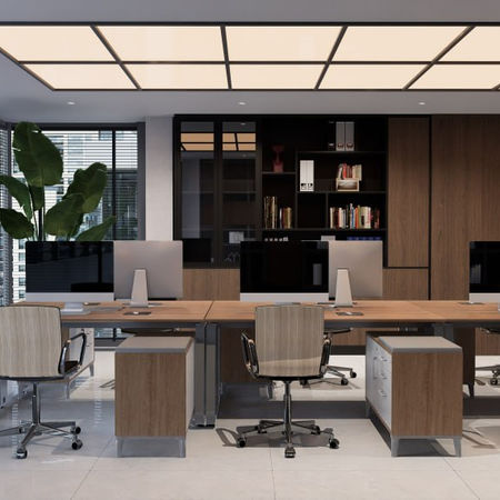 Офіс преміумкласу для інженерно-промислової корпорації складається із відкритих open space, відокремлених стінами, що передбачених забудовником
