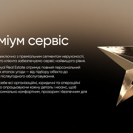 Royal Real Estate — агентство преміальної нерухомості, що спеціалізується на продажу житлових об’єктів бізнес та преміум класу в Києві. Ми працюємо з новобудовами від провідних девелоперів столиці, а також з ексклюзивними резиденціями на вторинному ринку. Основу нашого портфеля складають об’єкти в центральних районах Києва — Печерську, Шевченківському, Голосіївському та на правому березі міста загалом.